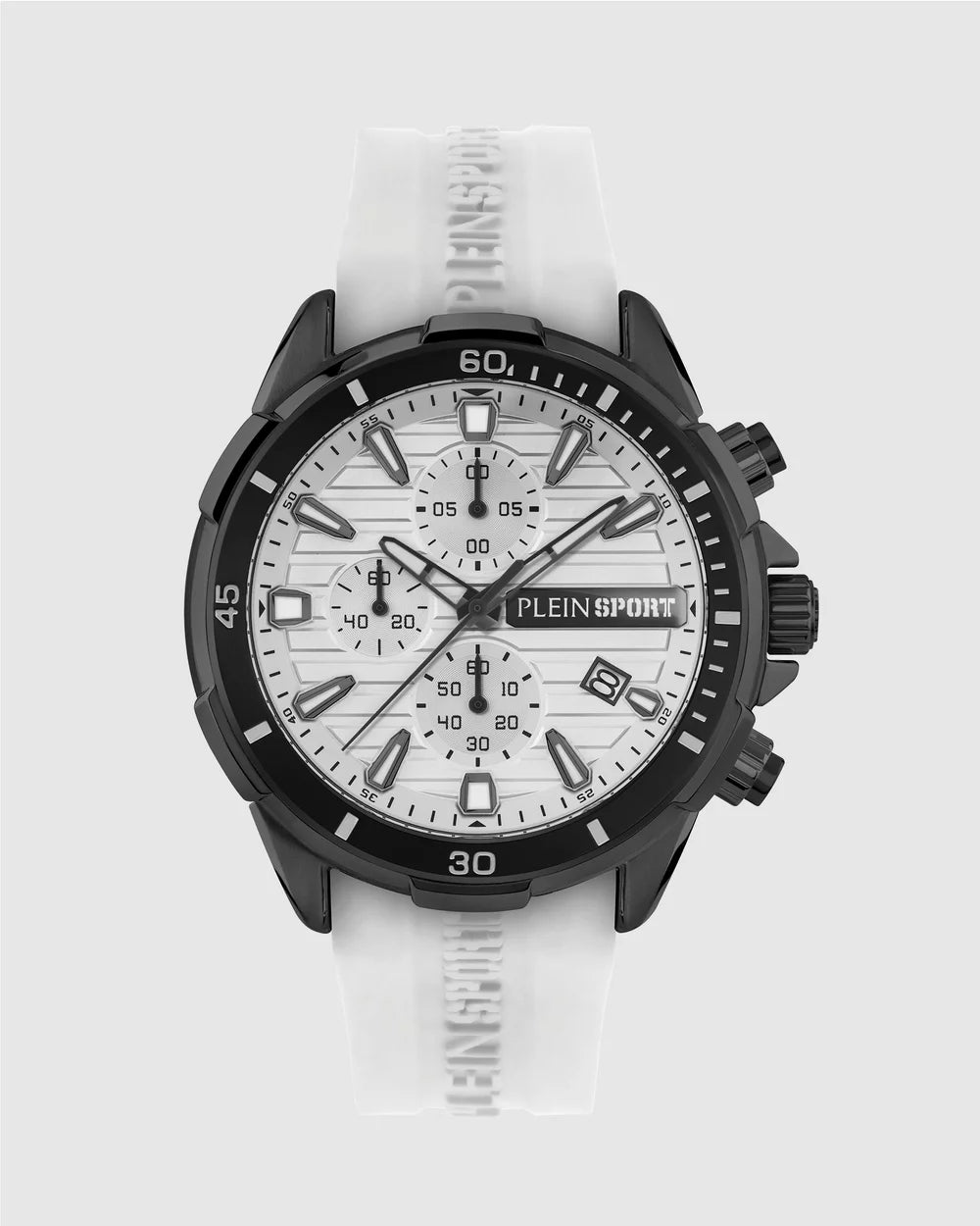 Impact Chronograph has bold 46mm case and sleek dial featuring the iconic Plein Sport logo